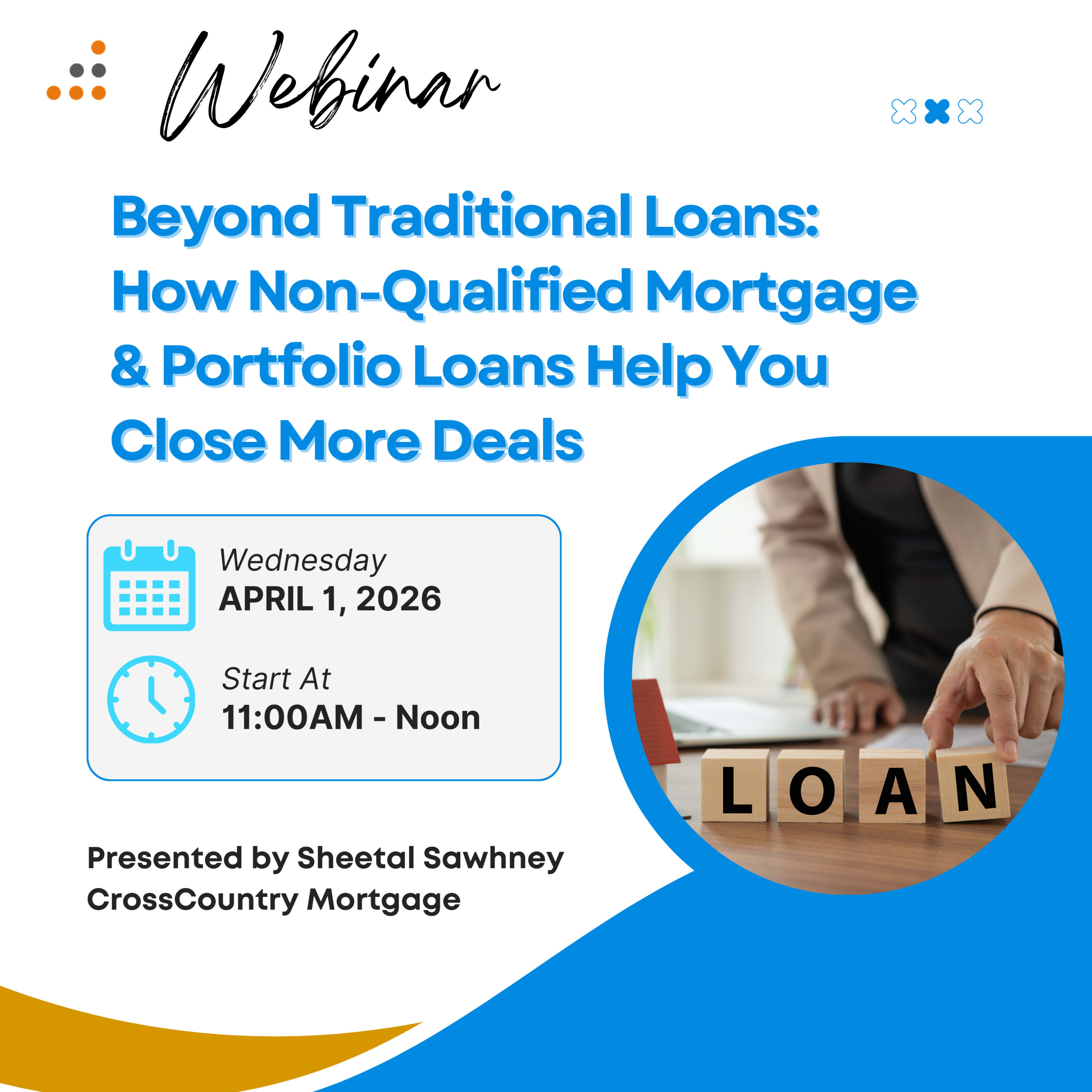 Go beyond conventional lending and discover how Non-Qualified Mortgage (Non-QM) and portfolio loans can unlock more opportunities for your clients. This session delivers practical, easy-to-understand insights you can use right away to overcome common financing challenges, serve a wider range of borrowers, and close more deals with confidence.